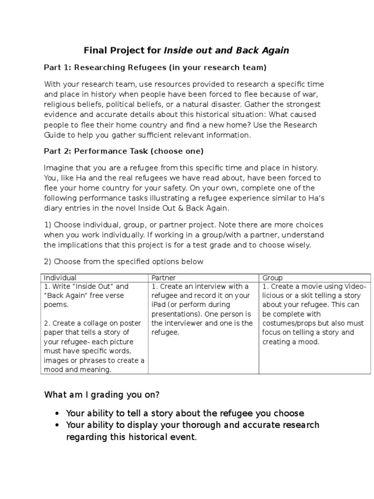 Inside Out Back Again Poetry Analysis Project And Presentation